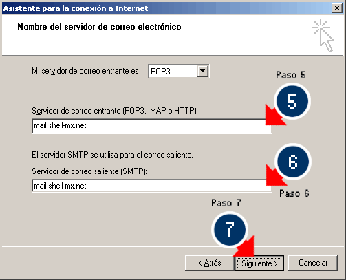 Paso 5 - Escriba la dirección del servidor de correo entrante POP3: mail.shell-mx.net