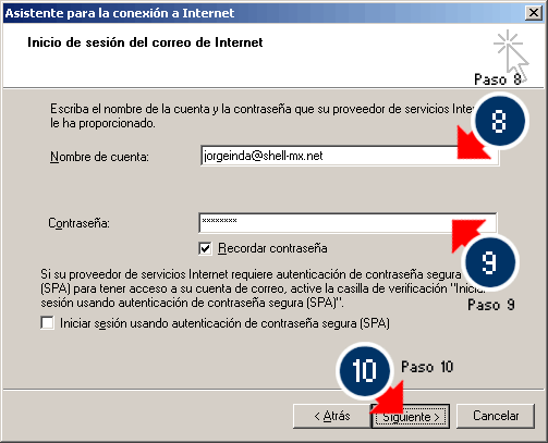 Paso 8 - Escriba su nombre de cuenta: (usuario@shell-mx.net)