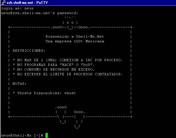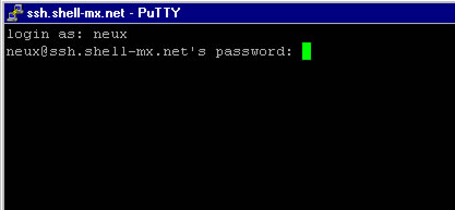 login as: en donde UD proporcionara su login de entrada, de inmediato le pedirá de igual manera su password